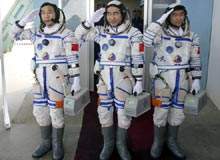 The Shenzhou VII spacecraft which blasted off from Jiuquan in barren northwest China on 25 September, carried three men, including one picked to become the nation’s first spacewalker. The sole task of mission commander Zhai Zhigang was to retrieve a rack attached to the outside of the orbital module. He remained outside for about 13 minutes.