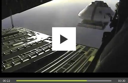 Testing saw a mock-up capsule dropped from an aircraft 25,000 feet above the US Army’s Yuma Army Proving Grounds in Arizona, US.