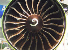 The GE90-115B powers 777-200LR, 777-300ER and 777 Freighter aircraft. It is 135in in diameter and 287in long, and features aerodynamic design ensuring the blades to draw large amounts of air into the engine. The lighter blades minimise the weight of the engine, while also contributing to lower fuel burn.