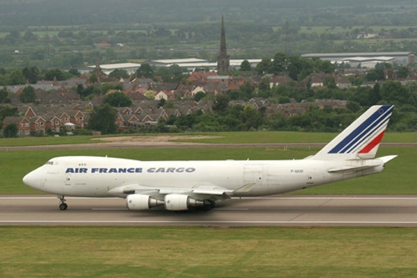 The Boeing 747-400ERF (Extended Range Freighter), an all-cargo transport version of the 747-400ER jet airliner, first entered service with Air France in the second half of 2002.