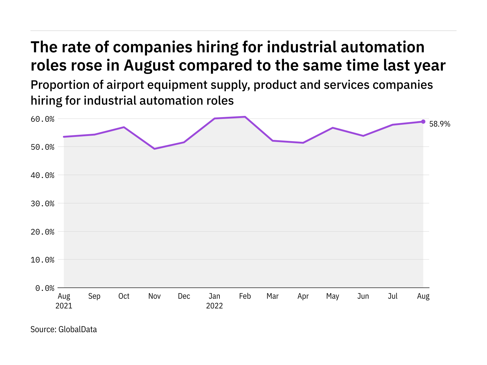 The proportion of airport equipment supply, product and services companies hiring for industrial automation related positions rose in August 2022…