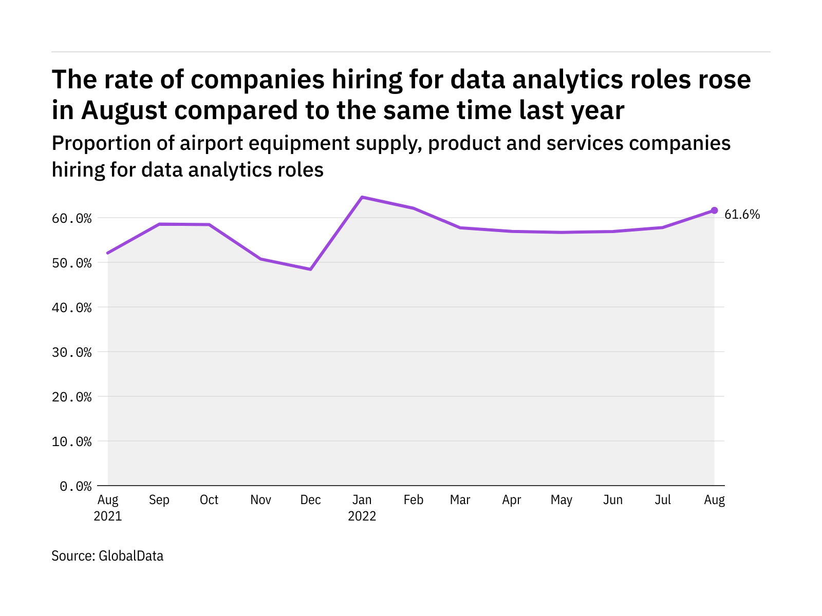 The proportion of airport equipment supply, product and services companies hiring for data analytics related positions rose in August 2022…