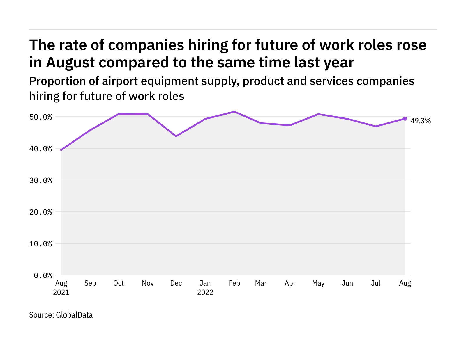 The proportion of airport equipment supply, product and services companies hiring for future of work related positions rose in August…