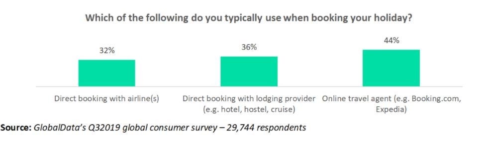 Prior to Covid-19, GlobalData’s Global Q32019 consumer survey found that OTA’s were the primary choice of booking channel, with 44% of global respondents booking through an OTA. Not far behind, 36% booked directly with a lodging provider and 32% directly with an airline.