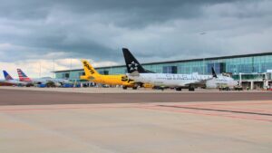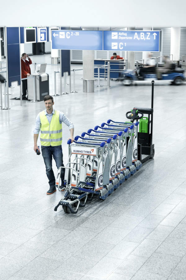 Airside trolleys are used to transport hand luggage or duty-free purchases.