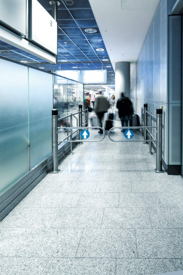 A recognition sensor system ensures that passengers are separated and as soon as these checks have been passed access is granted and passengers can proceed to the passport and security control points. In the event that the boarding card is invalid or passenger separation is not confirmed, the barrier remains closed. A display pictogram informs the passenger of the actual status.