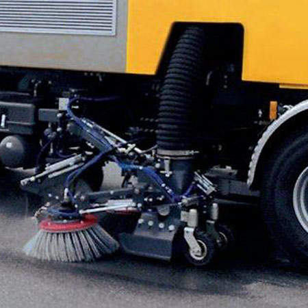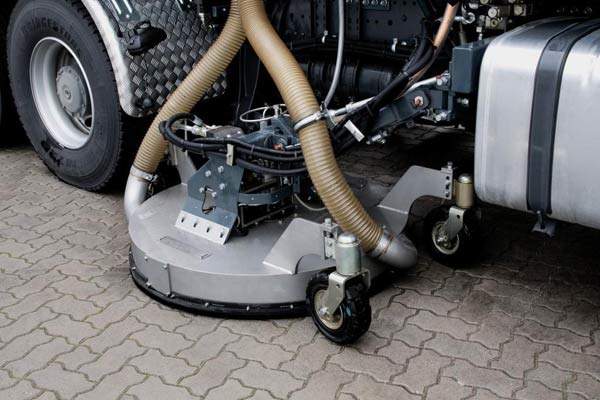 The truck is equipped with a hydrostatic slow-motion drive for a controlled optimum forward speed during the cleaning process of the rubber removal.