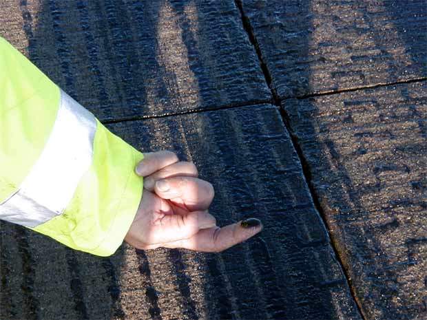 This accumulation of rubber causes serious friction problems, particularly in wet weather, as we have all been made aware of by the recent spate of aircraft leaving the runways on landing. The build up of rubber deposits can cover the major white lines of a runway in only three weeks.