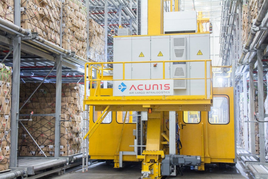 Our brand ACUNIS stands for Air Cargo Intralogistics and focuses on innovative and efficient solutions for air cargo terminals. Our products and services range from individual components to turnkey solutions, from the planning and engineering of a cargo terminal, through high-bay storage systems, elevating transfer vehicles (ETVs), conveying equipment and work stations, including automation and warehouse management systems, to assembly, installation and start-up.