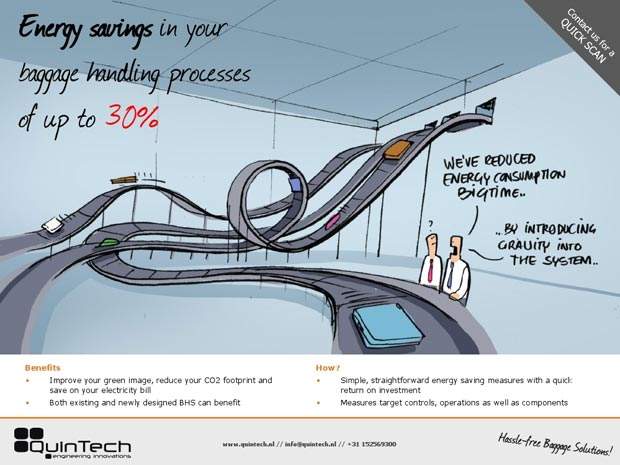 Most baggage handling systems are designed for operational availability and robustness. Today, however, the focus on energy saving and CO2 emission reduction has become much greater.