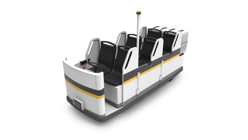 The e-Mobby is electric-powered and able to transport PRM. It can be connected to enable driving two or three passengers at a time.