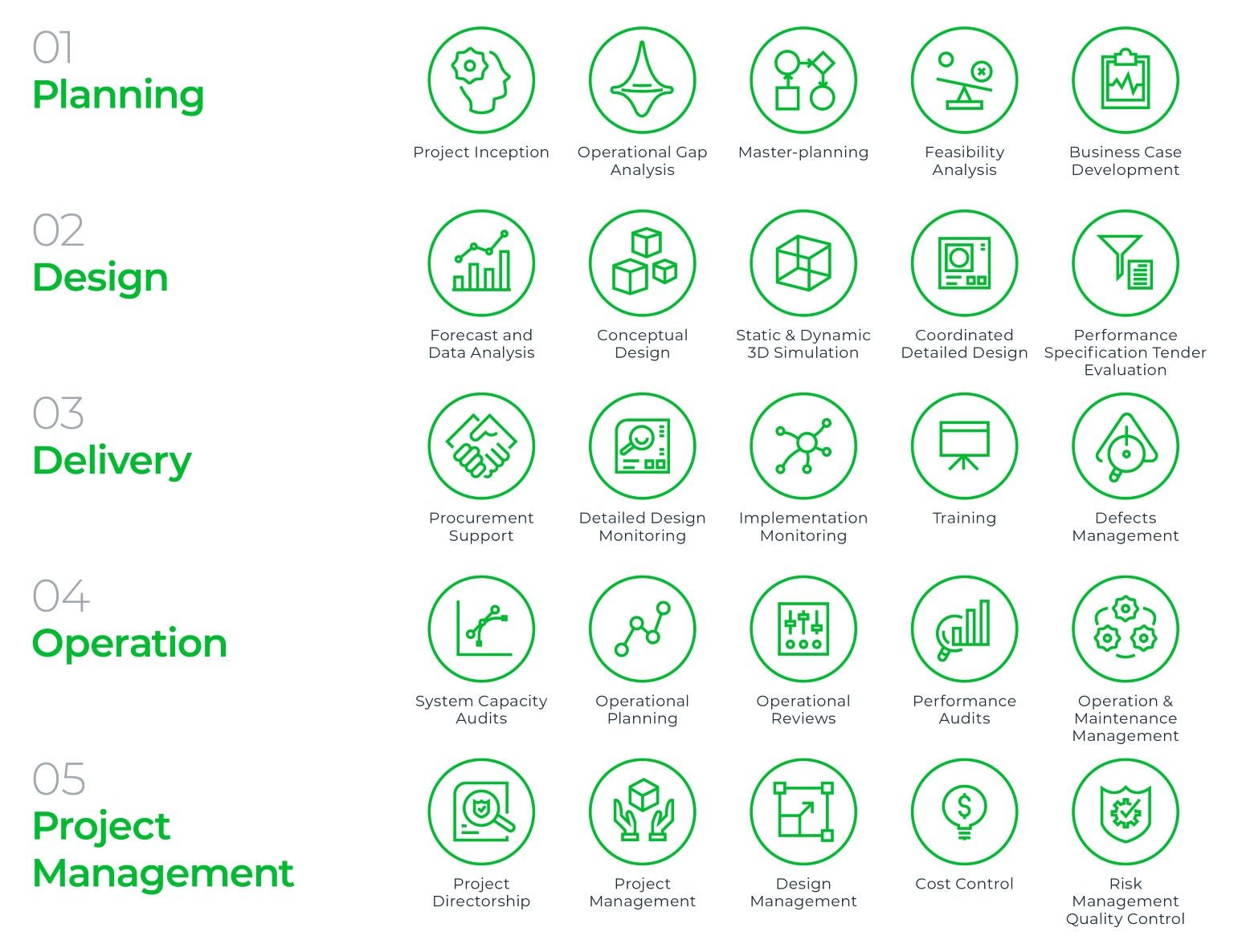 We master plan, concept design, analyse, engineer, optimise, integrate and project manage the delivery of complex technical facilities, working with airports, airlines, ground handlers, integrators, developers, builders and other consultant disciplines to deliver world class facilities for our clients.