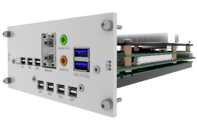 The UltraFlex Mini PC features an optimal power / performance ratio, using approximately 20W when driving three screens. Redundant power supplies in the chassis guarantee the highest levels of reliability. Dual Ethernet connections enable concurrent access to two different networks. Individual CPU and RAM configurations provide maximum flexibility, and the standard Eurocard format makes it easy to install.