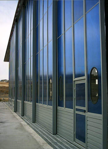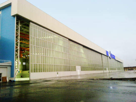 This strong door has a lightweight design and is suitable for many types of hangar applications. The special construction of the door enables it to be cladded with various types of materials including heat isolation, noise isolation and different glazing options. This type of door also offers low-cost alternatives for most of the standard applications.