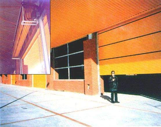 Each type of door has electrically operating devices and appropriate safety devices attached to it.