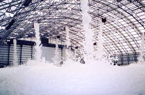 Foam system fire protection for aircraft hangars depends on group / classification and either commercial or military specifications. Along with traditional foam-water sprinkler systems, foam monitors, and foam-water hose line systems, the ANSUL foam offering features our long-proven high-expansion foam systems.