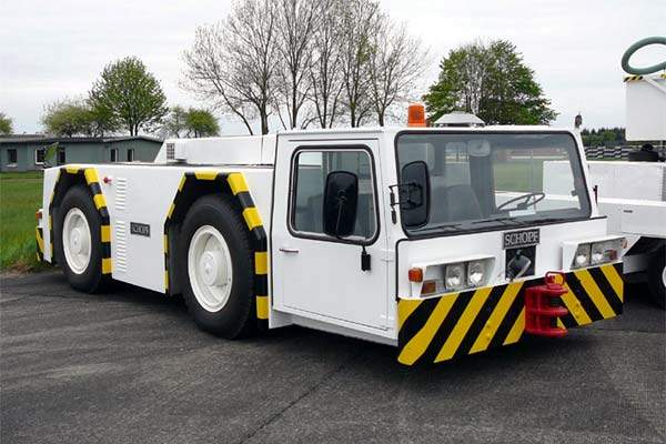 Apron tractors with diesel, hybrid, liquid gas and electric drive with a self weight from 3t up to 6t.