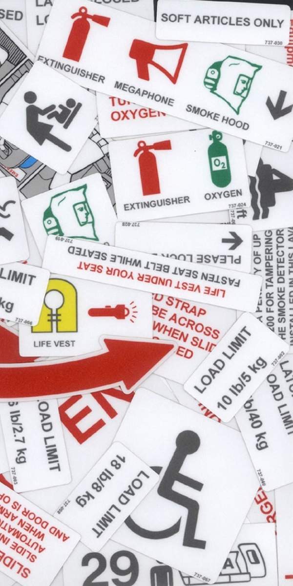 Aviation Graphix’ placards are manufactured using aviation-grade materials and adhesives to withstand cabin flamability limits, cleaning chemicals, temperature fluctuations, and UV exposure. Each set is fully customisable to match the aircraft’s interior aesthetics, ensuring a seamless integration with the client’s brand identity.