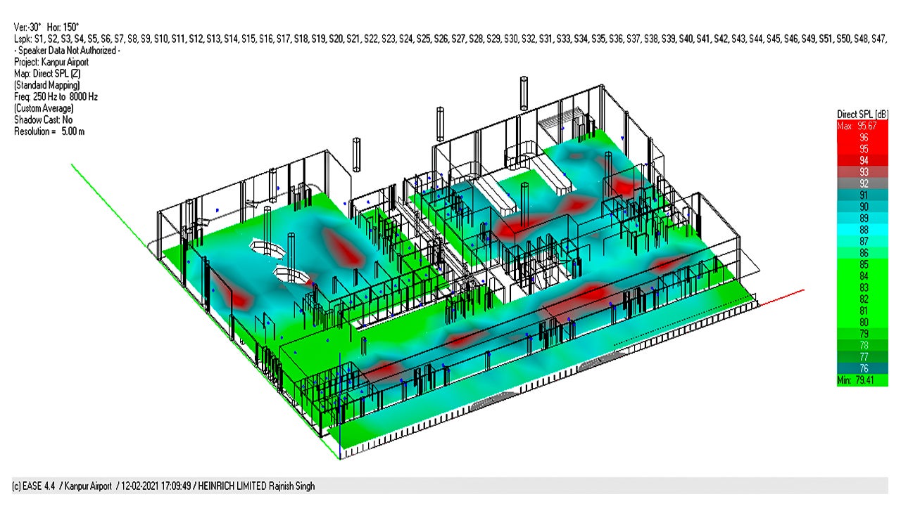 Our engineers prepare acoustic simulations for each system using EASE software, which can accurately depict the acoustics of a high-reverberation area such as terminal buildings with glass, gloss or metal structures.