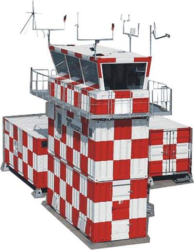 The six parts which make up the mobile airport are the tower (TCT), briefing (TCB), substation (TCS), lighting (TCL), diesel (TCD) and material (TCM) modules. The mobile airport offers a computerised control and monitoring system, comprising of: