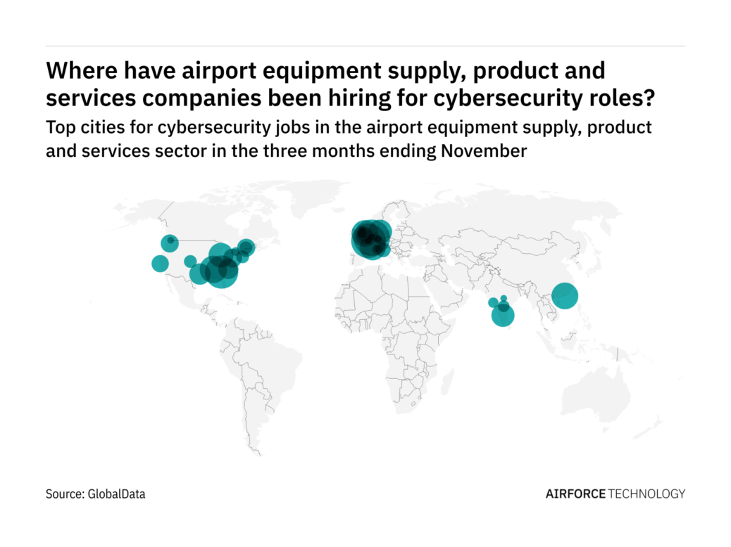 The top country for cybersecurity roles in the airport industry is the United States which saw 35.6 per cent of all roles in the three months ending November.
