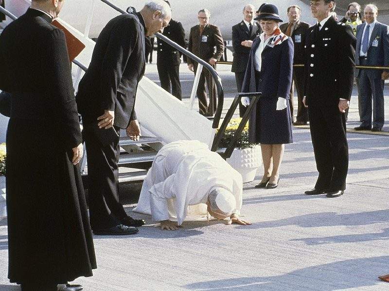 However, possibly the most iconic and memorable occasion came in 1982, when Pope John Paul II flew in for his tour of the UK and kissed the tarmac upon arrival.
