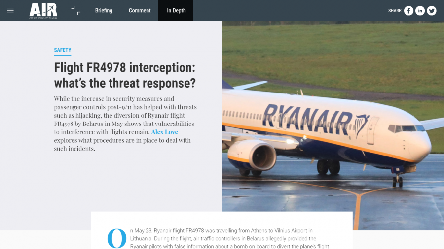 While the increase in security measures and passenger controls post-9/11 has helped with threats such as hijacking, the diversion of Ryanair flight FR4978 by Belarus in May shows that vulnerabilities to interference with flights remain. Alex Love explores what procedures are in place to deal with such incidents.