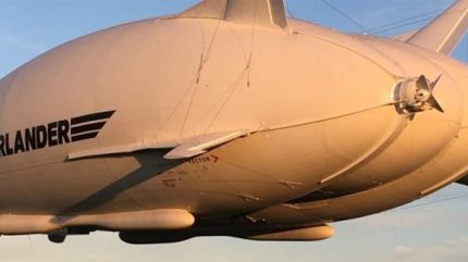 A combination of a plane and an airship, the hybrid aircraft is currently stationed at its masting site.