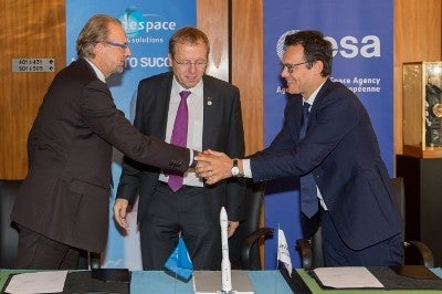 Image: The ADM-Aeolus launch contract signing ceremony. Photo: courtesy of ESA.