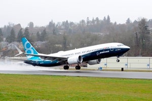 Image: The Boeing 737 MAX 8 takes off from Renton. Photo: courtesy of Paul Gordon / Boeing.