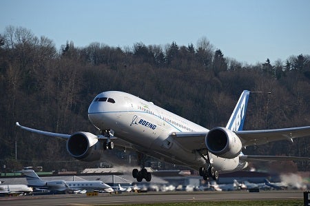 Image: The ecoDemonstrator 787 flight was powered with a blend of green diesel and petroleum jet fuel. Photo: courtesy of Boeing.