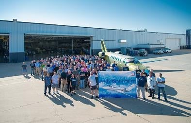 Image: The CJ3+ roll-out ceremony. Photo: courtesy of Cessna Aircraft Company.