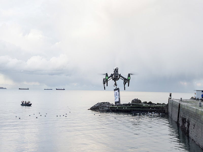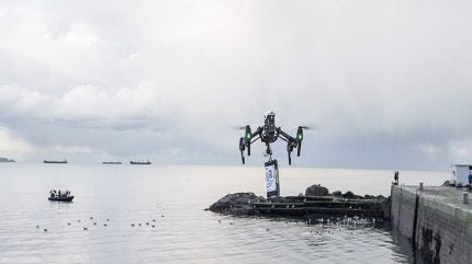 During the 2min flight, the drone delivered a 250g parcel from the shoreline to a boat at sea almost 200m away in Dun Laoghaire, Dublin.