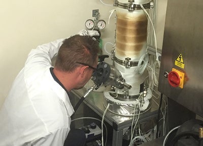Image: Testing the ice adhesion performance of a GKN Aerospace-developed icephobic coating inside the firm's new benchtop test device. Photo: courtesy of GKN.