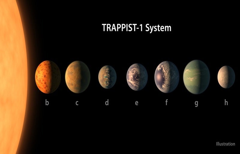 Image: Artist's concept shows what each of the TRAPPIST-1 planets may look like, based on available data about their sizes, masses and orbital distances. Photo: courtesy of Nasa/JPL-Caltech.