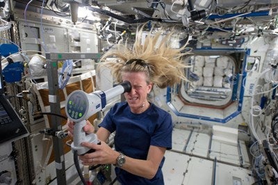 Image: Nasa astronaut Karen Nyberg uses a fundoscope to image her eye while aboard the International Space Station. Photo: courtesy of NASA.