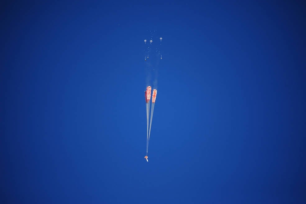 The system features 11 parachutes that deploy in an exact order.