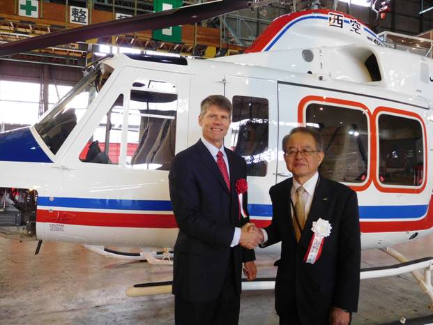 Image: Bell Helicopter president John Garrison and Nishi Nippon Airlines president Nobuo Tanoue. Photo: courtesy of Textron Inc.