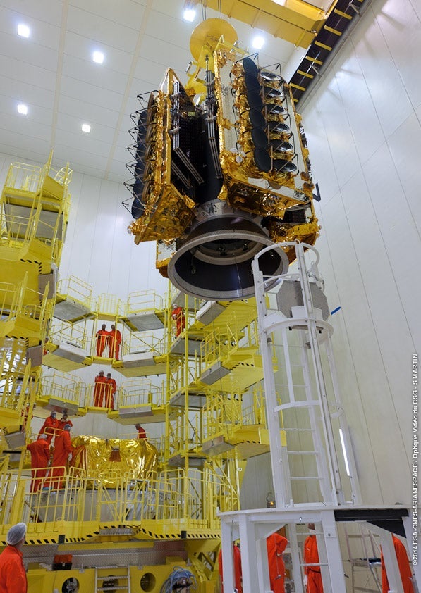 Arianespace has integrated O3b Networks’ four-satellite payload on its Soyuz launcher’s Fregat upper stage, in preparation for launch on 18 December.