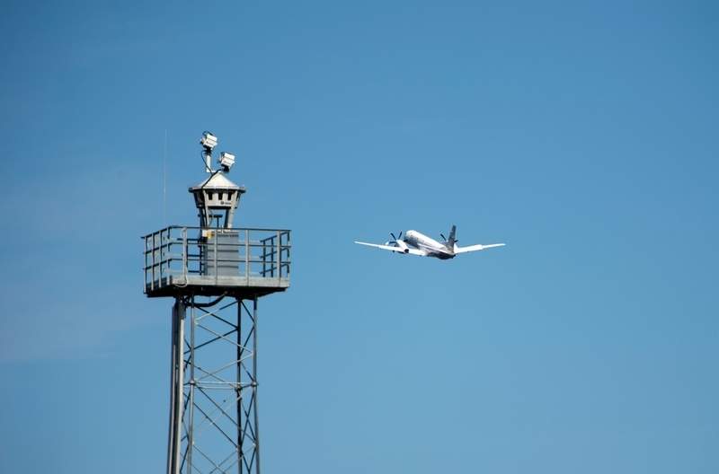 Image: An aeroplane and ATC tower. Photo: courtesy of Saab.