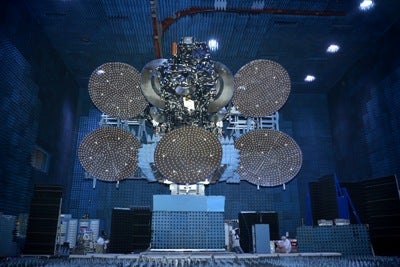 Image: JCSAT-14 in the compact antenna test range (CATR). Photo: courtesy of SSL.