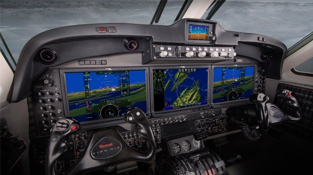 King Air’s Pro Line Fusion features three 14in touchscreen primary flight displays to provide pilots with interactive maps and easy-to-use icons.