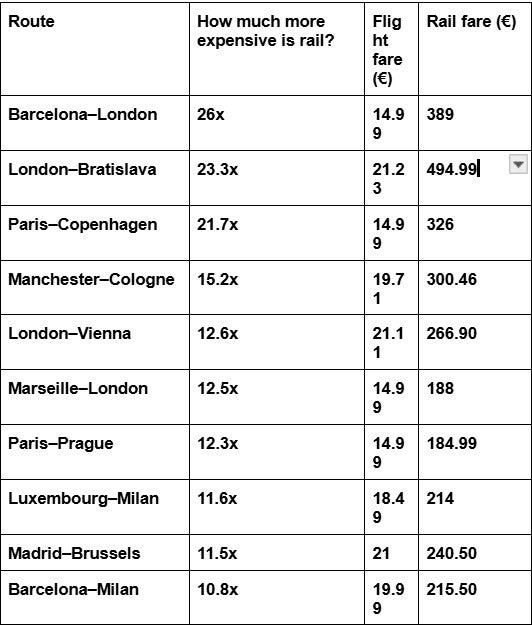 Flying Cheap, Paying Dear is the second investigation comparing the low price of budget air carriers with the equivalent train journeys across Europe. The group said the effect of cheap air travel is “creating a perverse incentive that encourages polluting air travel” over less polluting rail travel.