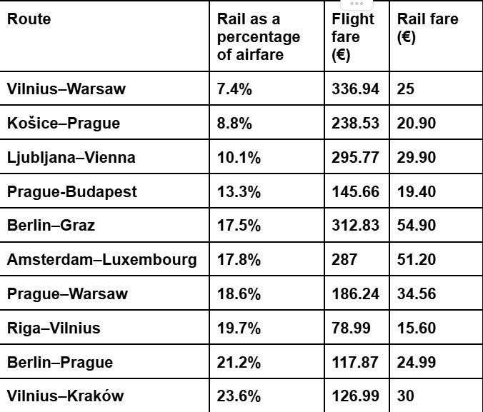 It also found that inflationary pressures have affected airfares more than rail fares in the past two years. That, along with some improvement in direct rail connections across Europe, meant some rail journeys effectively remained stable in price while the comparative air journey became more expensive.