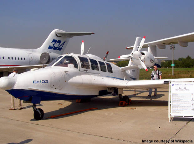 The Be-103 was designed by Beriev Aircraft Company. It is a low-wing monoplane of riveted design built for short hauls over routes that have rivers, lakes and streams. A single-piece airframe structure is designed to reconcile the boat, centre wing section, fin and engine pylons.