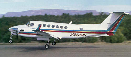 The hydraulically retractable tricycle-type landing gear has twin-wheeled main units and a single-wheeled steerable nose unit. The gear is equipped with Goodrich tyres, Goodrich hydraulically operated multi-disc brakes, and Beech oleo-pneumatic shock absorbers. The main gear retracts forward and the nose unit retracts rearward.