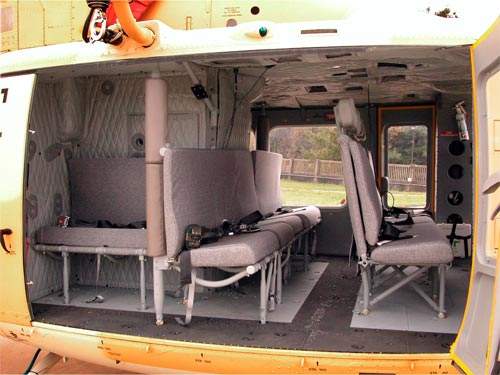 The cabin provides comfortable seating for up to 13 people. The cabin is fitted with four push-out windows for emergency egress. A 28ft³ baggage compartment in the tail boom can carry loads up to 180kg.