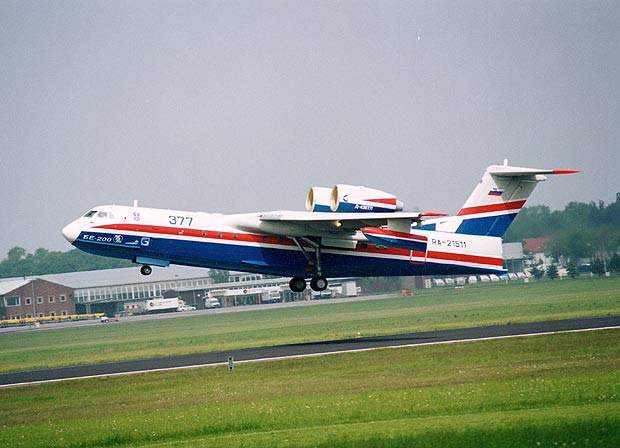 The Beriev Be-200 is an amphibious multirole turbofan aircraft designed by the Berieva Aviatsionnyi Kompaniya (Beriev Aviation Company), with the Russian Irkutsk Aircraft Production Association (IAPO) responsible for the production engineering development phase of the programme. The first flight took place in 1998 and the aircraft was first seen in the west at the 1999 Paris Air Show.