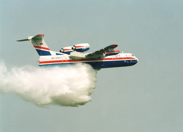 The Beriev Be-200 was first developed for firefighting missions. It can start, take-off and land on water and can carry a load of 12t of water.