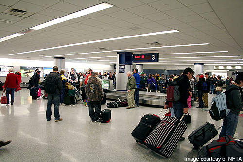 The airport is located in Cheektowaga, New York, US. It handled 5.22 million passengers in 2010.